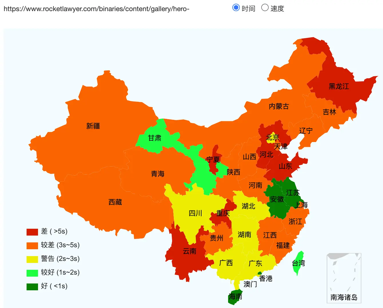 Rocket Lawyer' websites speed test across China
