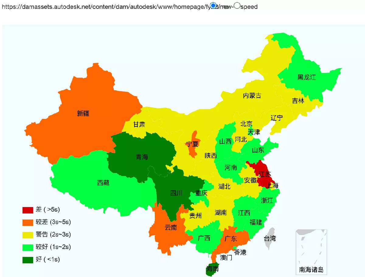 AutoDesk's websites speed test across China