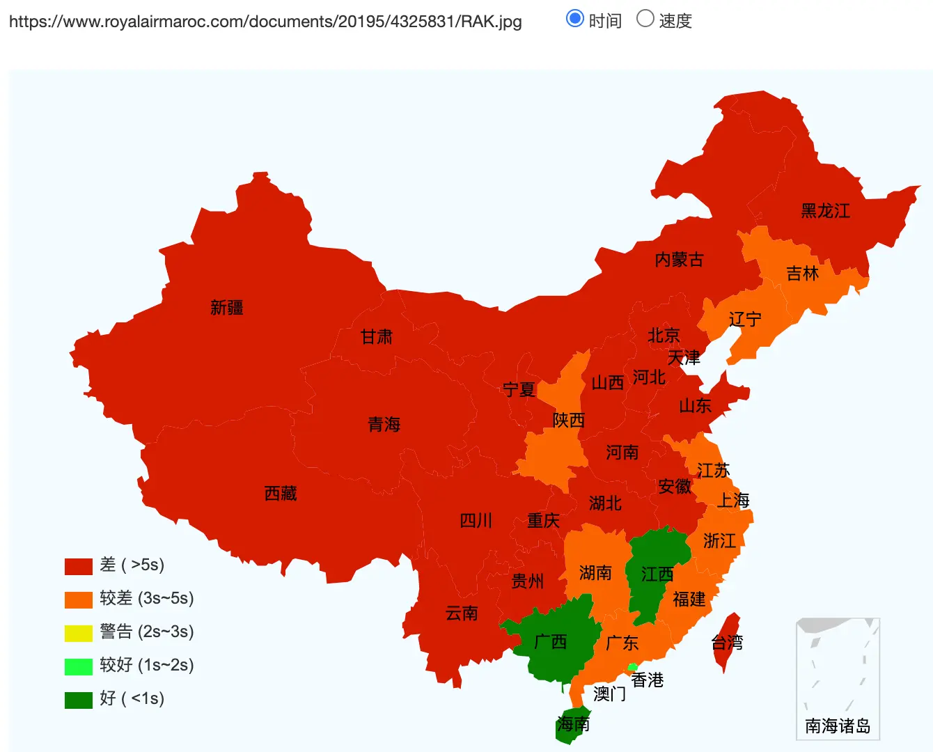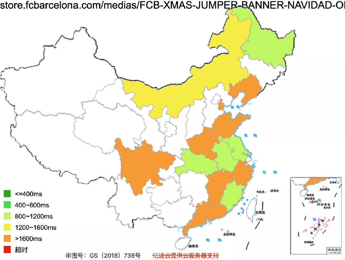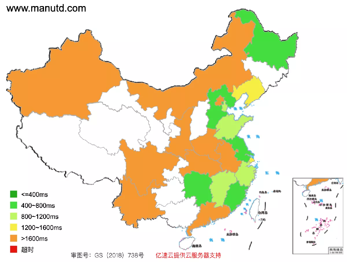 www.manutd.com access speed across mainland China (green: fast, red: slow)