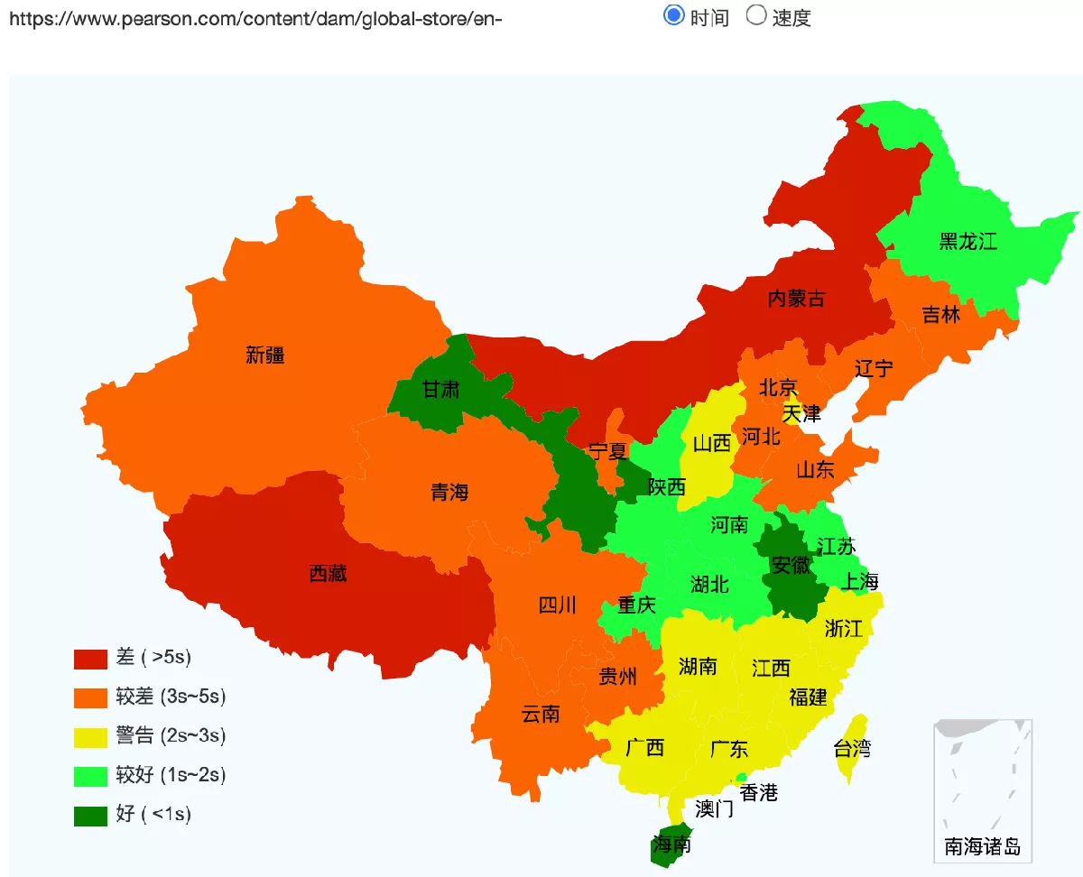 Pearson's websites speed test across China