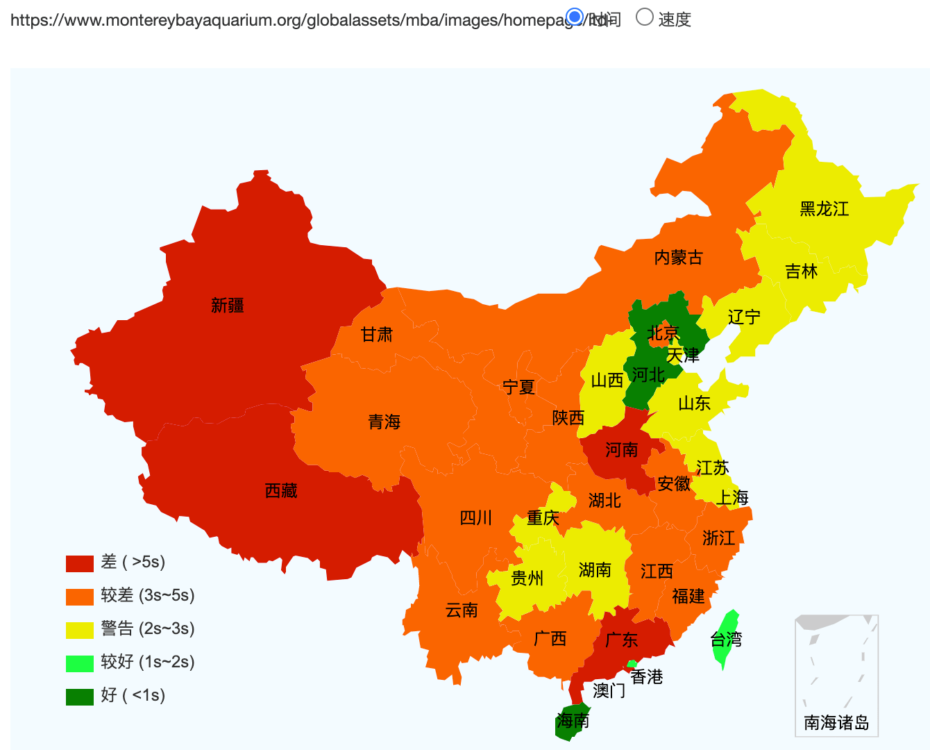 Monterey Bay Aquarium's websites speed test across China