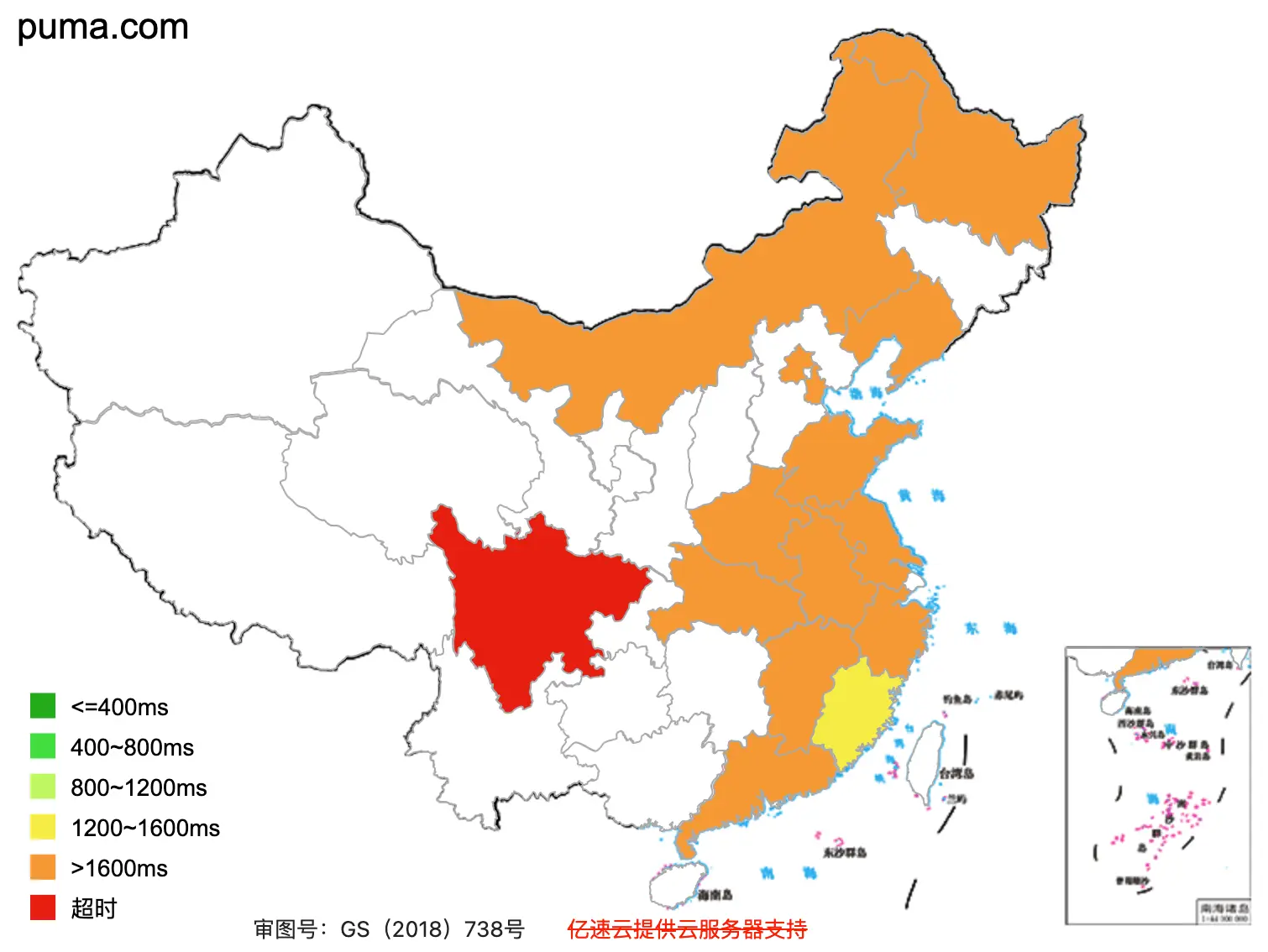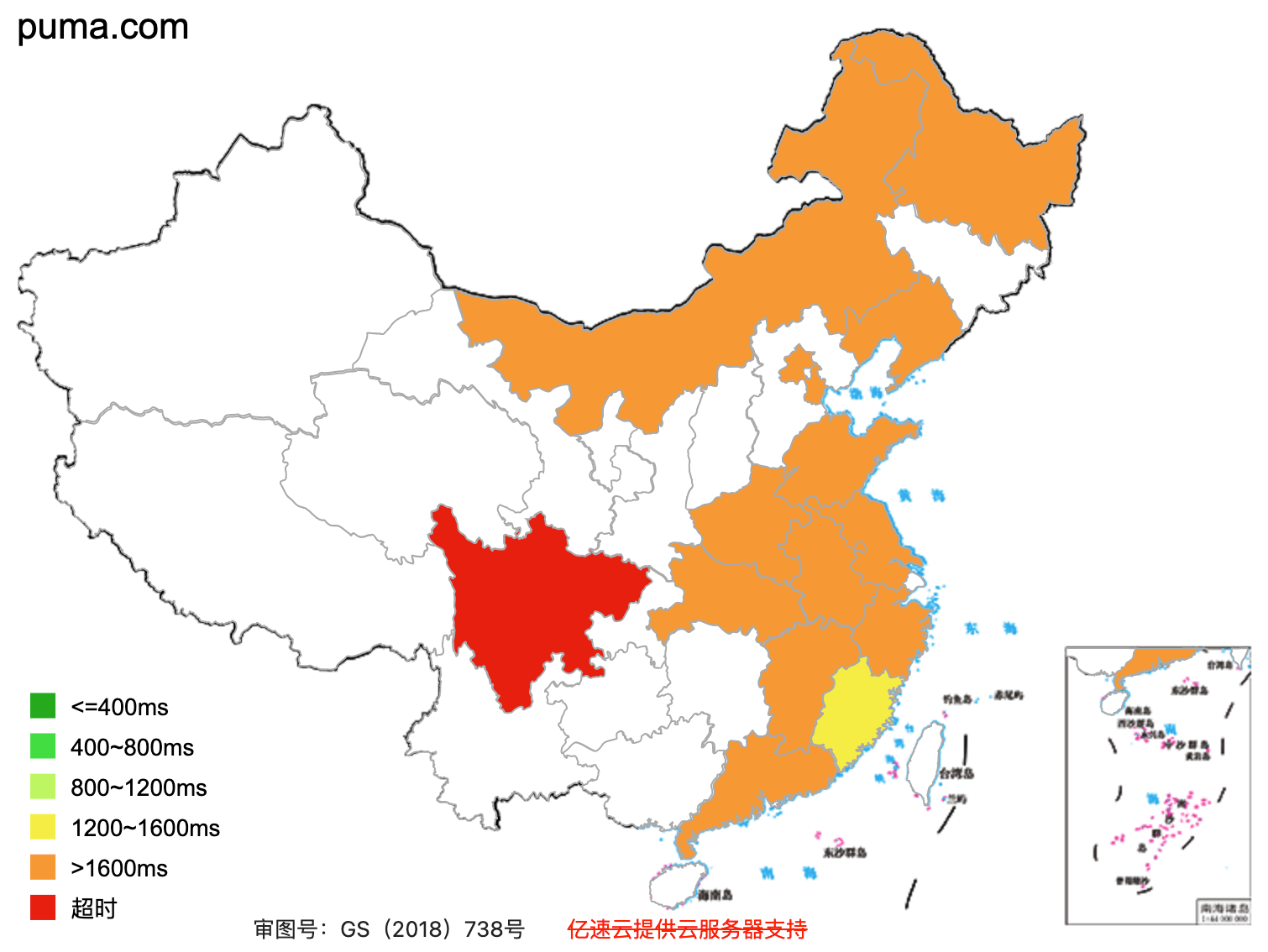 Puma.com's speed test across China